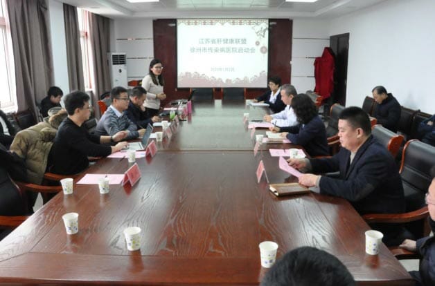 2020年1月2日上午江苏省肝病健康联盟徐州启动会在市传染病医院行政楼三楼会议室召开。会议由麦迪科技公司经理杨瑾主持,联盟盟主单位南京第二医院副院长殷国平、联盟成员单位徐州市传染病医院党委书记王为民分别作重要讲话。