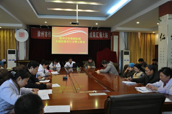 市传染病医院按照徐卫行便字【2014】14号文件要求,院行风办对不规范行为视频中所涉及服务行为问题及服务管理问题进行分解、归类、制作成PPT,组织全院中层干部、职工观看、讨论,剖析问题原因及制定整改措施。