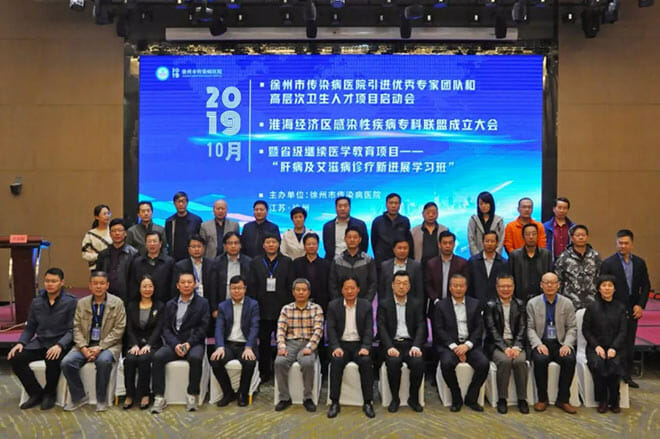 2、成功引进北京地坛专家团队和南京二院高层次人才项目,为徐州感染性疾病防治提供技术支持 为全面落实徐州市卫健委“引进临床医学专家团队计划”,传染病医院以“科教兴院、科技强院”为宗旨,积极主动与国内一流的传染病医院学习交流,10月30日,徐州市传染病医院“引进优秀专家团队和高层次卫生人才项目启动会暨淮海经济区感染性疾病专科联盟成立大会”隆重召开。引进首都医科大学附属北京地坛医院“成军教授团队”,协助医院重点专科建设和人才培养工作;为了拓展肝病科诊疗范围,提高综合救治能力,引进了南京二院外科学科带头人、院长“易永祥教授”团队,指导徐州肝胆外科的发展。