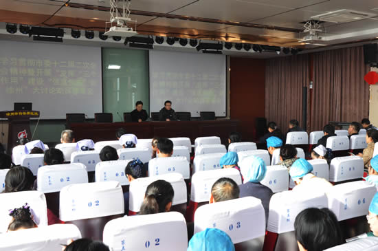 2017年1月9日下午,徐州市传染病医院学习贯彻市委十二届二次全会精神暨发挥“三个作用”,建设“强富美高”新徐州大讨论活动动员部署会在医院会议厅隆重召开。院党委副书记、院长张克球同志主持会议,党委书记李健同志作动员部署,院领导、院中层干部、专家、党员代表参加会议。
