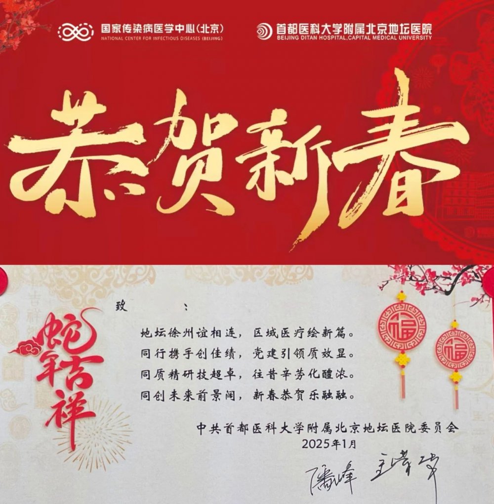 陈效友指出,感谢地坛医院党委及领导班子这一年来给予七院全力指导与支持,在七院全体干部职工的共同努力下,七院的各项业务指标均得到了较大提升;感谢金院长在新春佳节到来之际,来到徐州为派驻干部、七院职工送上温暖的祝福与问候。2025年是国家区域医疗中心建设攻坚之年,是挑战更是机遇,全体职工要团结一心、勇于应战,七院必将迎来更加美好的明天。