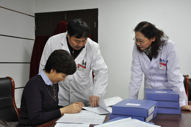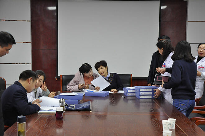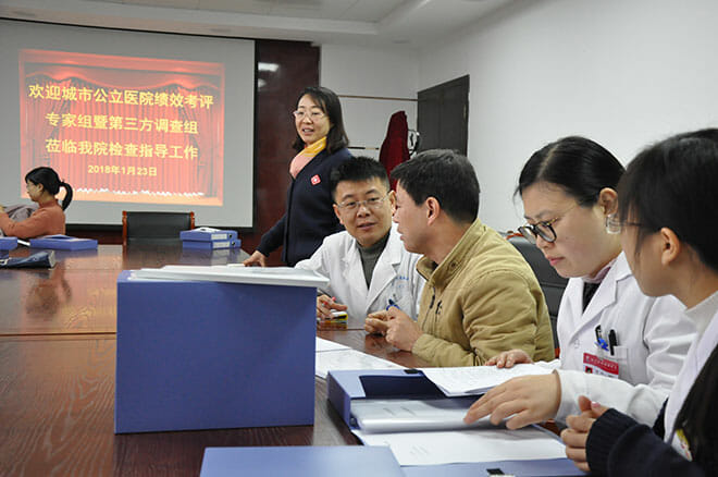 为加强公立医院管理,深入推进医药价格综合改革,公平公正的检验我市城市公立医院2017年度综合改革工作,让社会和群众评判医改效果。2018年1月23日上午,第三方机构——徐州市万人市场调查有限公司,组织相关绩效考评专家及第三方调查组对我院2017年度医院综合改革绩效进行了第三方评价和满意度调查。院长张克球、党委书记李健、副院长王春颖、姚均伟、郇业青及相关职能科室负责人陪同了检查。