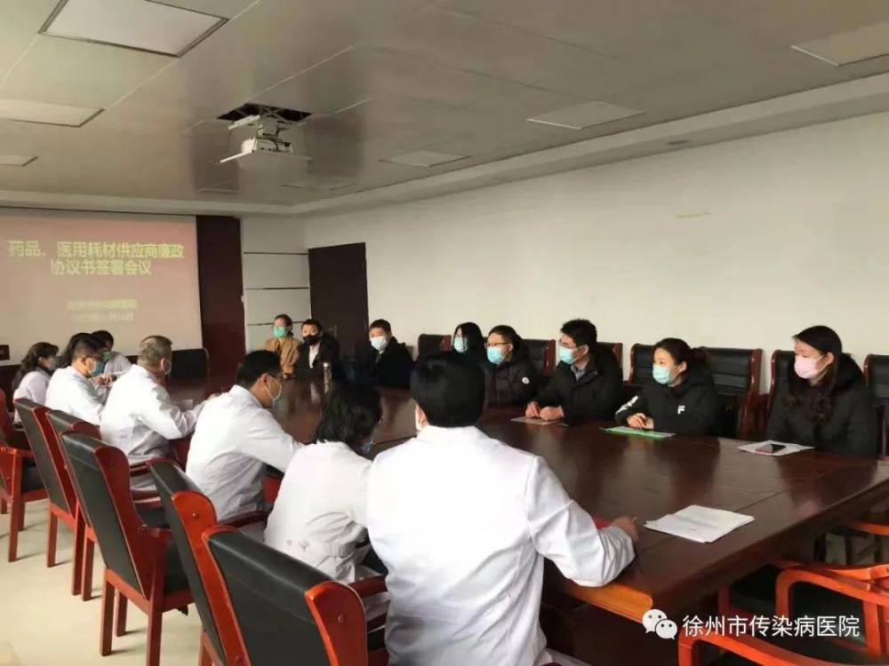 为进一步推进医院廉政建设,规范药品、耗材供应商及其业务人员的营销行为,防范商业贿赂,维护医院的医疗秩序。1月28日上午,徐州市传染病医院召开2022年度药品、医用耗材供应商廉政协议书签署会议,会议由采购办副主任王绪民主持,院领导、相关职能科室负责人及供货商代表参加了本次会议。