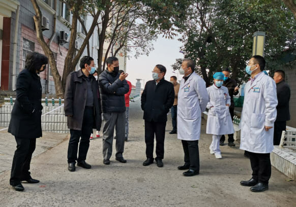 2月3日下午,国家卫健委督导组来我院检查督导我院新型冠状病毒感染的肺炎疫情防控工作。副市长李燕、市卫健委主任吴宪及市传染病医院党委书记王为民陪同。