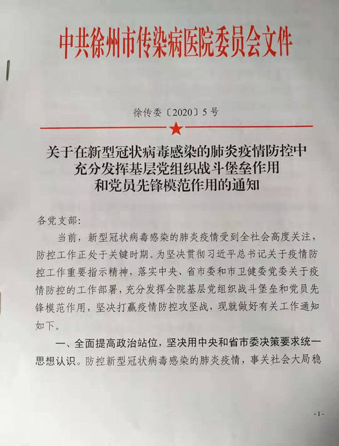 疫情就是命令,防控救治就是责任!徐州市传染病医院作为新型冠状病毒感染的肺炎定点收治医院,针对新型冠状病毒感染的肺炎疫情处置,医院党委坚决贯彻落实习近平总书记关于疫情防控工作的重要指示精神,落实中央、省市委和市卫健委党委关于疫情防控的工作部署,坚决打赢疫情防控攻坚战。