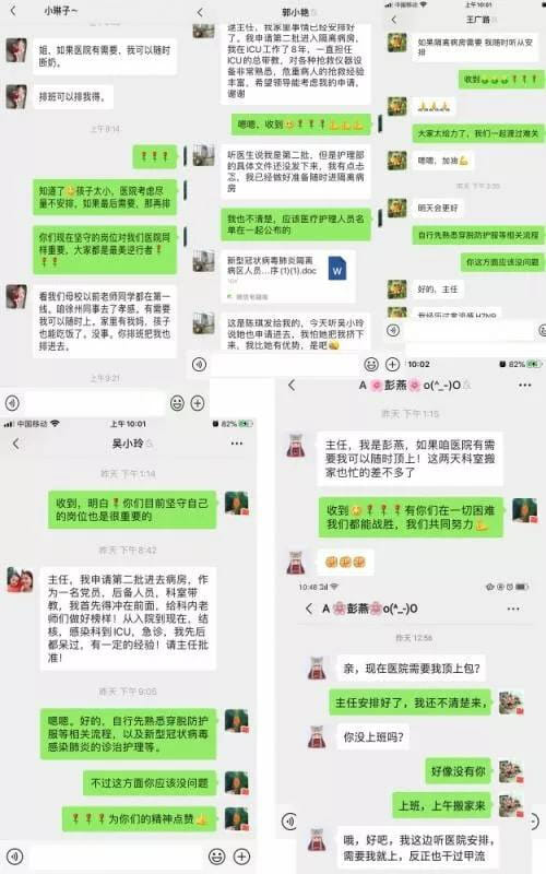 有的说:“家里有我妈,孩子也可以吃饭了,没事,排班把我优先排进去。”有的说:“我在ICU工作了8年,对各种抢救仪器设备非常熟悉,危重病人的抢救经验丰富,希望领导能考虑我的申请,我已经做好准备随时进隔离病房。”还有的说:“我申请第二批进入病房,作为一名党员,我首先得冲在前面,结核科、感染科、ICU、急诊,都有一定的经验,请主任批准。”行政后勤服务队积极做好保障工作,辗转采购急需物资,此时此刻,我们集全院之力抗击疫情,全体人员已经整装待发!