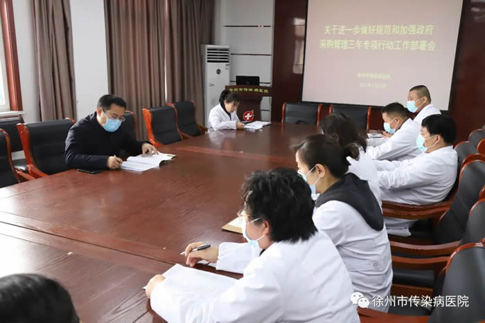 为贯彻落实省、市卫健委关于进一步规范和加强政府采购管理工作的相关要求,有效推进医院的政府采购管理各项工作,落实党风廉政建设主体责任。1月27日上午,徐州市传染病医院组织召开了专项行动工作部署会,会议由院长苏珂主持,总会计师缪文,采购、党办、审计、财务、设备、宣传等相关科室负责人参加会议。