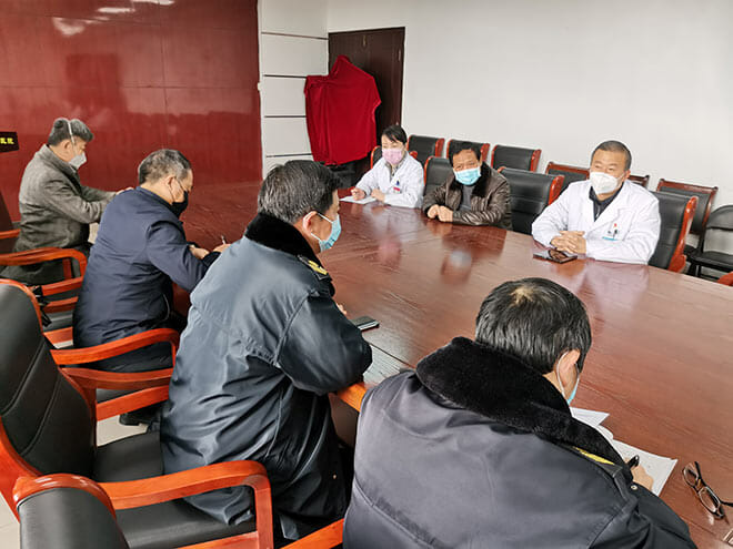 院党委书记王为民从我院对新冠状病毒感染的肺炎收治准备、人员配置、物资储备、救治病人、出院病人情况及从各医疗单位抽调的医务人员到岗等情况作了汇报。