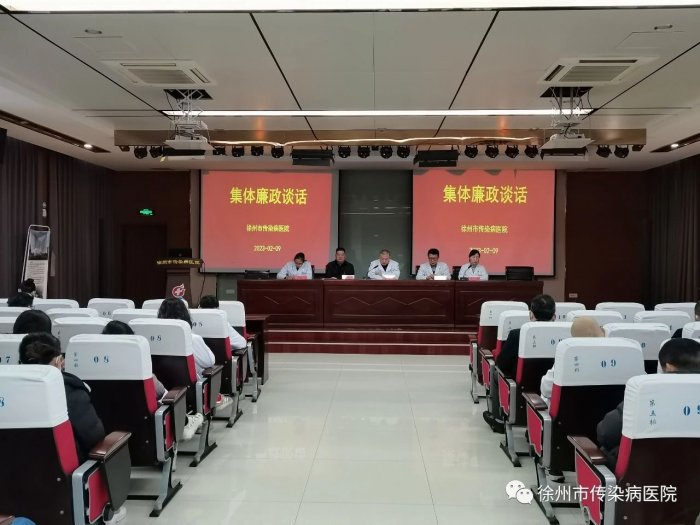 2月9日下午,徐州市传染病医院召开2023年度集体廉政谈话会议,院领导班子成员、中层干部及党员参加会议。