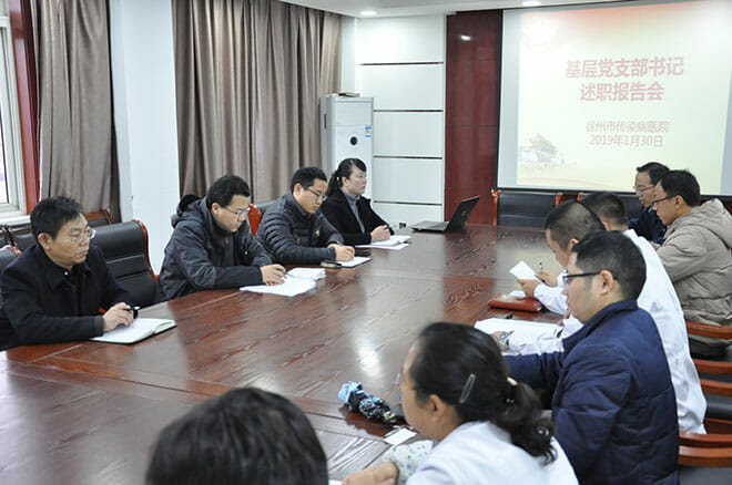 徐州市传染病医院(徐州市公共卫生医疗中心)党委按照市卫健委党委要求,根据中共中央组织部关于做好2018年度党委书记抓基层党建述职评议考核工作的要求,在职共5个党支部分别按照通知要求,突出学习贯彻习近平新时代中国特色社会主义思想和党的十九大精神,坚持以政治建设为统领,重点围绕贯彻落实党委工作精神,提高党建工作质量等方面进行述职。