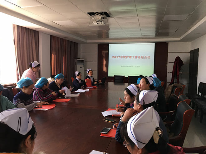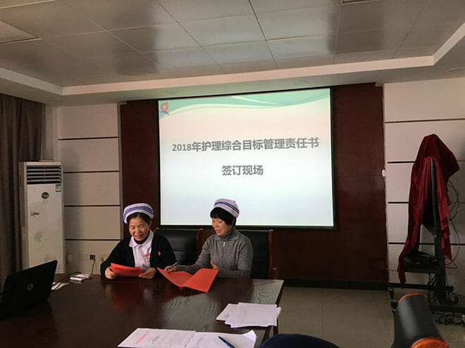 2018年2月13日,“2017年度护理工作总结会议”在9号楼3楼会议室举行,护理部主任庄旭华对护理部2017年得工作做了总结,对各科室护理团队取得的成绩给予了肯定,并对2018年的护理工作提出了新的要求,并分别与科护士长、护士长签订了护理工作综合目标管理责任书。