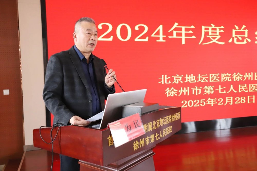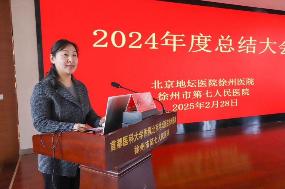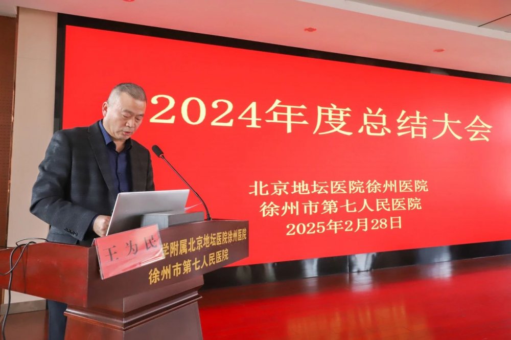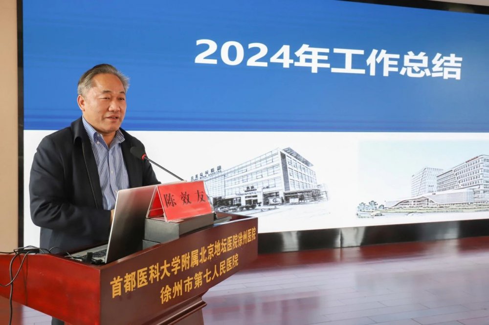 2024年,在北京地坛医院和徐州院区干部职工的共同努力下,医院在同质化管理与人才建设、完善学科布局、提升医疗服务能力、搭建科研教学工作体系、基础保障提档升级、多维宣传提升品牌影响力等方面均取得了明显的提升。在肯定成绩的同时,陈效友指出,医院发展过程中仍存在学科建设高峰效应还未充分显现,综合学科力量薄弱、科研创新基础较弱,专业技术人员匮乏、人才引进渠道不够广,培养激励机制不够健全、信息化系统仍不完善、运营周转压力大等问题。并从完善学科发展、推动人才队伍建设、扎实推动科研创新、持续推进医联体建设、提升区域辐射影响力等方面对医院2025年工作提出具体要求。陈效友强调,2024年医院在各项工作中取得了显著进展,为区域医疗中心建设奠定了坚实基础。未来,医院将继续秉承以患者为中心的发展理念,不断优化服务,提升医疗水平,为保障人民健康、推动医学事业的发展贡献更大力量。