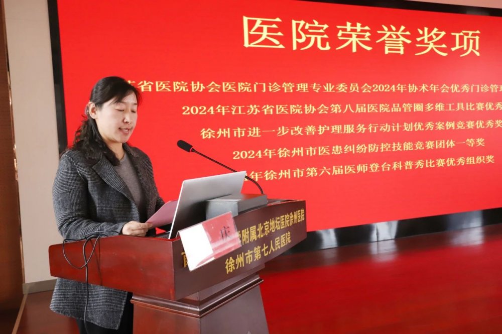 金荣华肯定了2024年徐州七院取得的成绩,并强调在国家区域医疗中心建设过程中,要牢牢把握“接”“转”“干”“领”综合发力,最后取得“赢”。国家区域医疗中心建设为七院带来了新机遇,要真正落实“政府真支持、地坛真想干、七院真配合”,全院职工劲往一处使,全力推动国家区域医疗中心的建设。他强调,在转变观念的过程中,要做到不回转、往前看,做到真正的转变观念、解放思想、提高效率。未来医院要做到内科外科化、外科微创化、微创机器人化,在转型的道路上要有危机意识,不断思考技术、医学、医疗之未来。在学科发展中需要有可测量指标,培育和引进学科优秀人才,不断进行学科创新,加强部门沟通、学科沟通、跨行业沟通,不断提高学科影响力。同时,在AI时代大潮流来临,要不断学习适应新时代。在医院运营方面,管理人员要做到重管理、懂经营、读数据、多沟通,不断提高效益效能,做到精益管理,为国家区域医疗中心建设奠定坚实的基础,不断提高医院运营效益与质量。