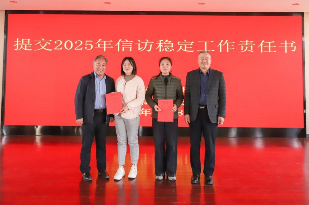 院办、党办负责人向陈效友、王为民递交信访稳定工作责任书。