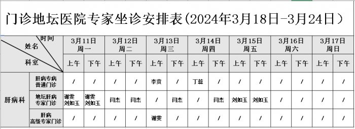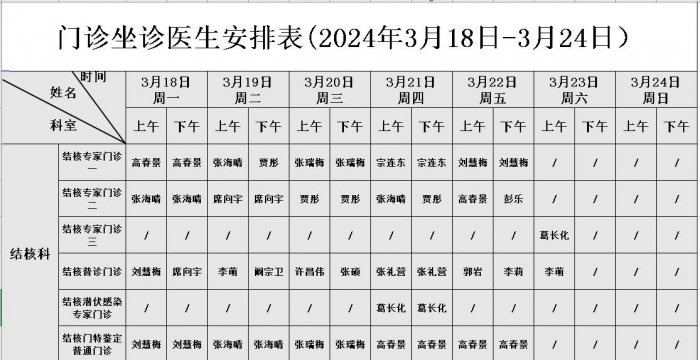 门诊坐诊医生安排表(2024年3月18日-3月24日)