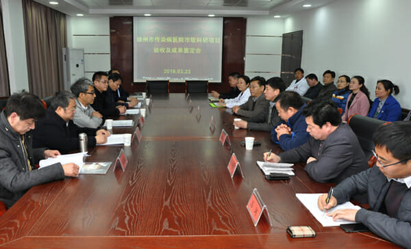 3月23日下午,由市科技局组织的市级科研项目评审专家组一行6人对我院市级项科研项目进行验收及鉴定,市卫生计生委俞军副主任、科教处郭成杰处长、张克球院长出席会议。
