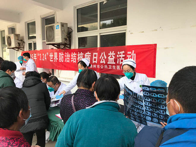 在活动现场,通过结核病专家现场咨询、结核病就诊患者免费检查痰涂片、肝肾功能、血常规等方式开展义诊,医院悬挂宣传横幅、发放各类宣传资料、设立咨询点等方式来向群众普及结核病知识。专家们用通俗易懂的语言,向前来咨询的群众讲解了结核病的传播途径、常见症状以及预防治疗等知识,促进了结核病防治知识的普及和全社会的共同参与。 结核病是一种严重危害人类健康的慢性传染病,我国大多数结核病患者是贫困人群,结核病是导致广大群众“因病致贫、因病返贫”的主要传染病,所以,做好结核病的防治,提高结核病防治知识普及率、知晓率和自我保护意识、自我保护能力,做好结核病防治工作迫在眉睫。