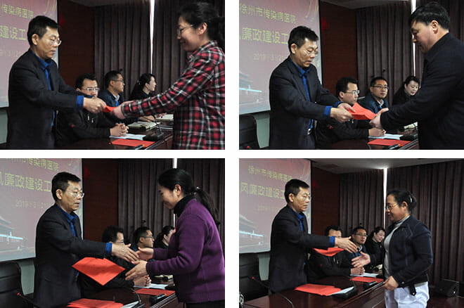 最后张克球院长强调要迅速传达会议精神,把思想认识统一到上级决策部署上来;要提高政治站位,认真履行主体责任;要精准发力,抓好重点领域专项治理,以扎实的作风、创新的精神、有力的举措,为争创江苏省三级甲等传染病医院作出更大的努力。
