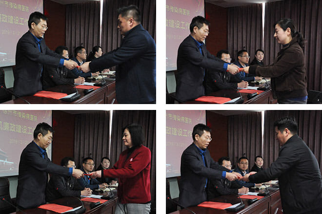 大会由院长、党委副书记张克球同志主持,党委书记李健同志做重要讲话。会议首先由党支部书记、临床医技科室、职能科室负责人向党委书记、院长分别递交了2019年度党风廉政建设和作风建设责任状。