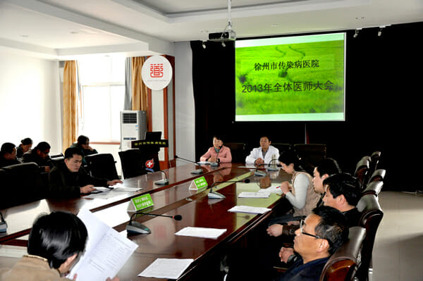 首先,医教科黄海滨科长汇报了今年1、2月份医疗检查情况,通报各科室在诊疗过程中出现的问题并提出整改要求。随后,医合办王海龙主任同大家一起解读并学习了我市今年医保新政策,以供全体医师在工作中实施。王春颖副院长代表医院,针对发现的医疗问题作出处罚决定并提出整改要求。针对传染病医院发展形势,结合我院实际情况,决定增加外科和肿瘤内科。刘加彬书记对我院去年医保政策的落实情况给予肯定,对今年医保政策要求全院医师严格执行。最后,张克球院长布置我院2013年度全院医师工作,加大科研投入、选聘中青年业务骨干院外进修、开展科主任后备人才选拔考核、培养科研人才,进一步提高医疗质量,并与各科室主任签订科室责任状,确保我院2013年度高质量高标准医疗水平和医疗安全。