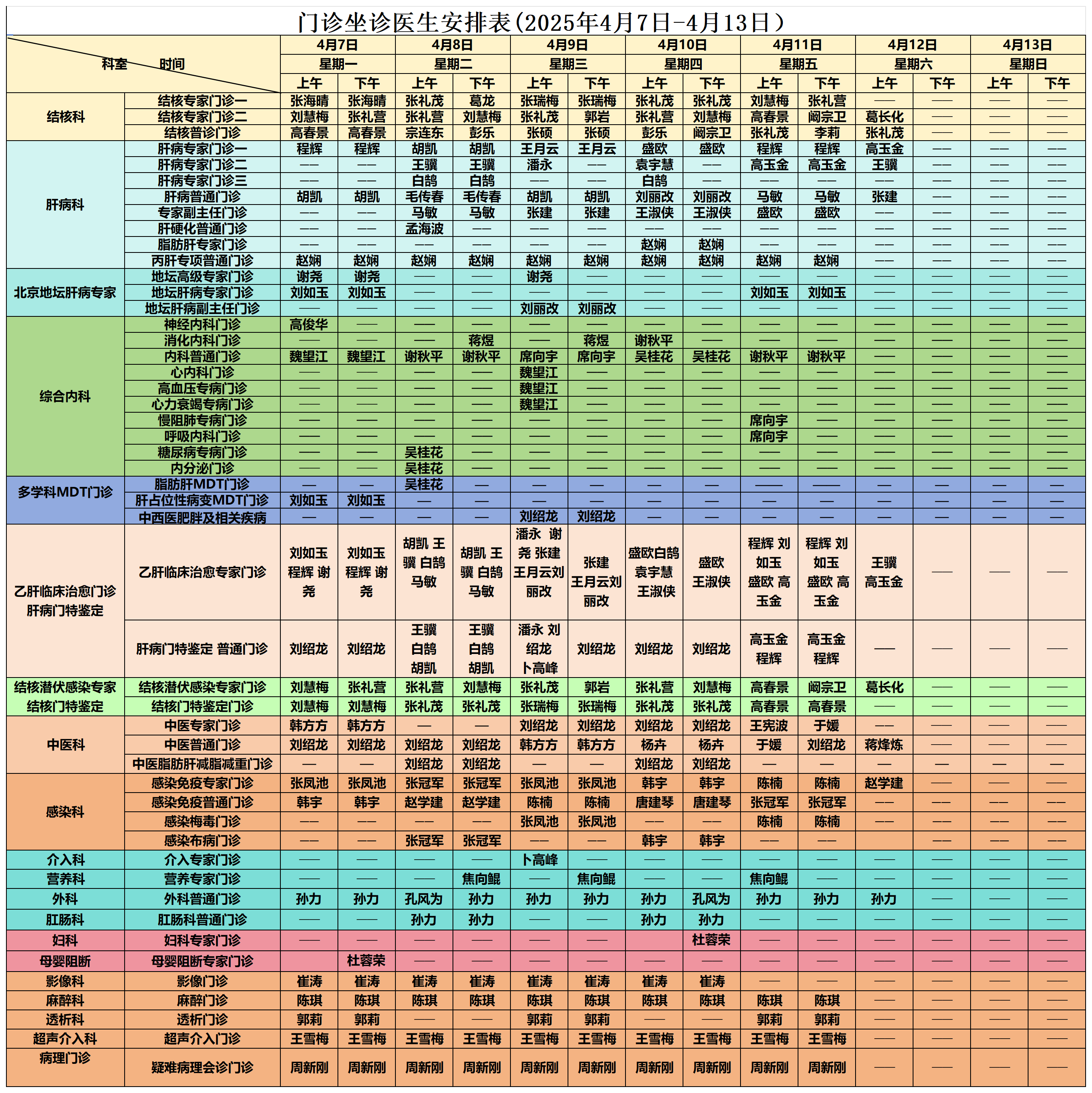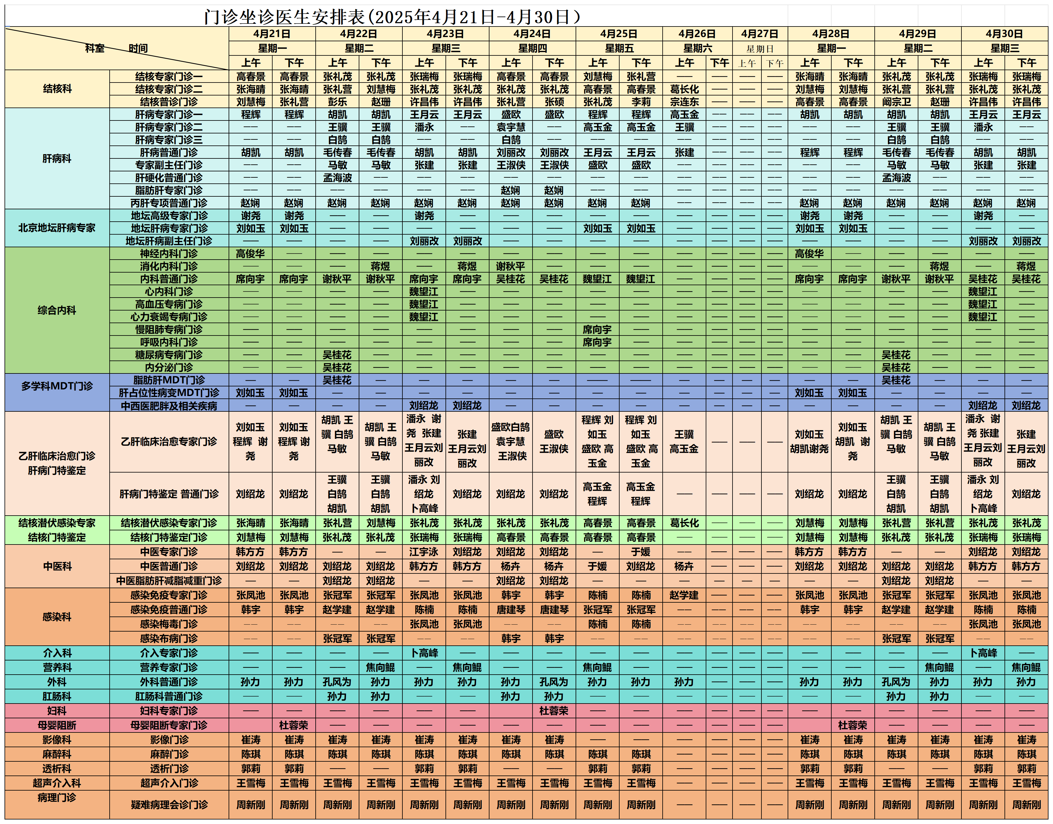 徐州市第七人民医院门诊坐诊信息一览表(4月1日-4月30日)