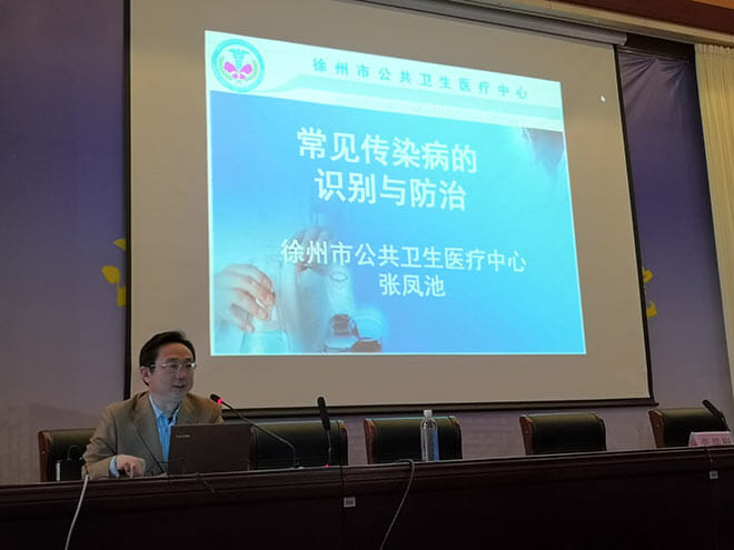 春天是一年中最美好的季节,也是一些传染病的高发时期。为了加强学校传染病的防治工作,同时结合省医学会结核病分会科普大讲堂的要求,2019年4月9日徐州市公共卫生医疗中心郇业青副院长带领着结核科张瑞梅主任、感染性疾病科张凤池主任等一行数人走进江苏徐州技师学院,开展以“健康讲座进校园 全面普及促健康”为主题的校园系列活动。该学院八个分院的近300名老师及班干参加了此次讲座活动。