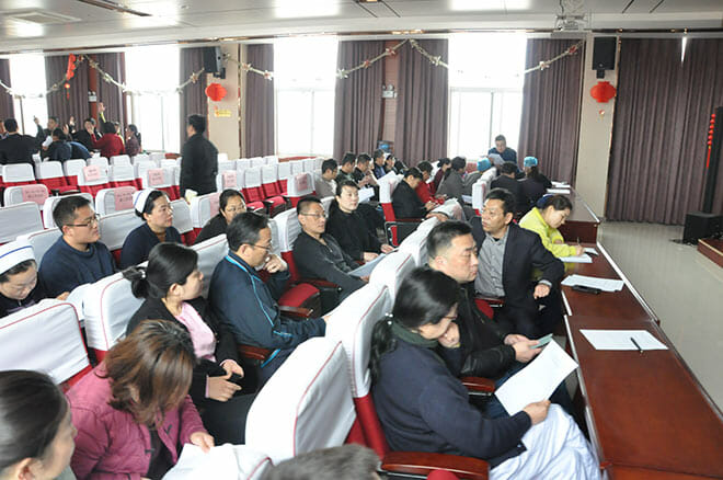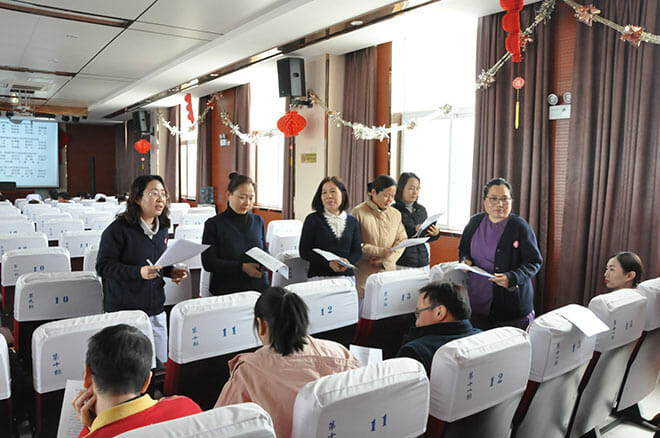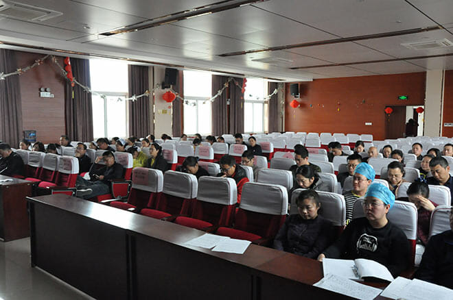 会议由院工会主席史为栋主持,院长张克球、书记李健及医院全体领导班子成员出席。本次会议主要审议表决《徐州市传染病医院员工手册(草案)》和职工工资福利问题等两项决议。主持人首先宣布会议应到职工代表67人,实到职工代表63人,大会正式开始。张克球院长宣读了《徐州市传染病医院员工手册(草案)》及有关职工工资福利问题等两项报告,并提交职代会审议。
