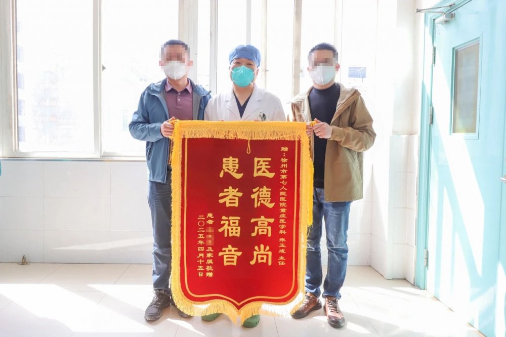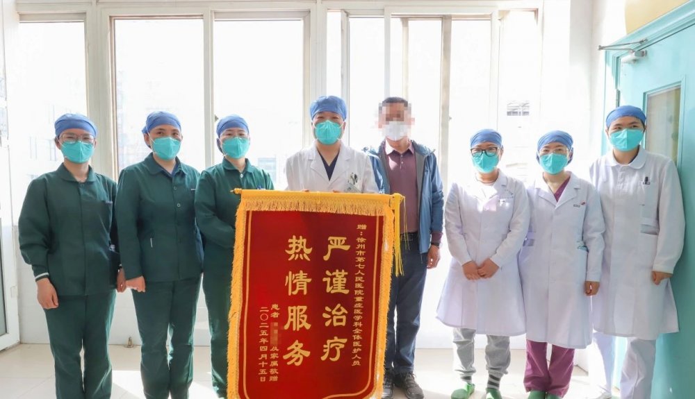 近日,北京地坛医院徐州医院(徐州七院)重症医学科(ICU)和科主任朱玉成分别收到了患者王女士的家属送来的写有“严谨治疗 热情服务”、“医德高尚 患者福音”的烫金锦旗,字里行间饱含患者及家属对ICU全体医护人员的感激之情,也见证了医患之间最真挚的情感纽带。
