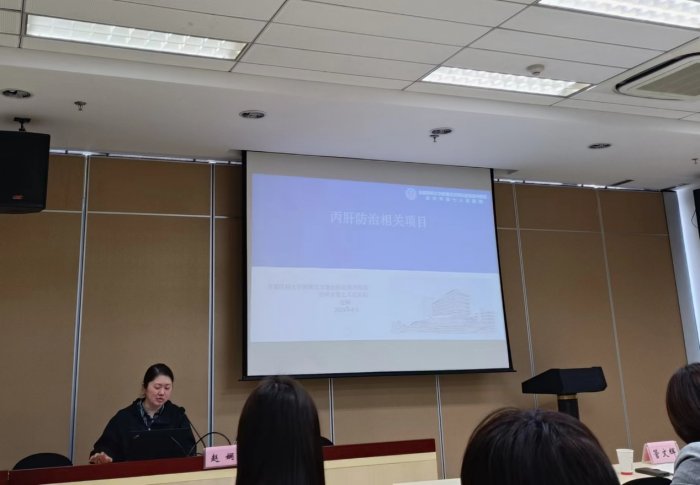 会上,江苏省疾病预防控制中心性病与艾滋病所所长管文辉致辞,肯定了目前全省对消除丙肝公共卫生危害工作做出的贡献和取得的成绩,并对下一步工作方向给予指导性建议。江苏省疾病预防控制中心性病与艾滋病所副所长杨丹丹主持会议,并就2023年项目进展情况做详细报告。我院丙肝专项门诊副主任医师赵娴参加会议,并代表徐州市分享项目管理方面的先进经验。