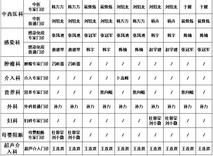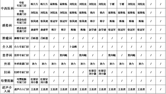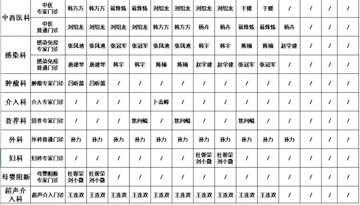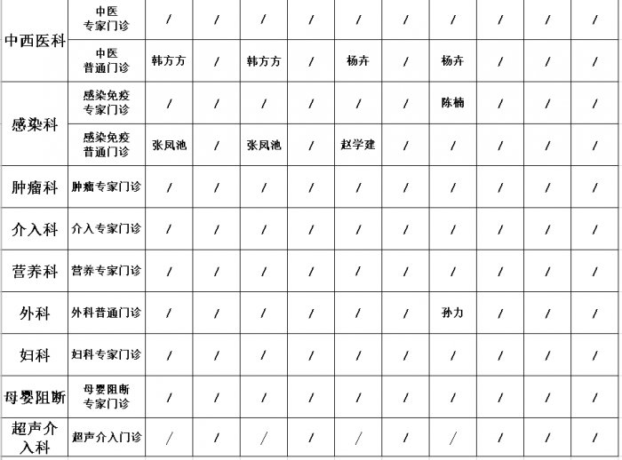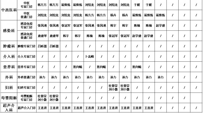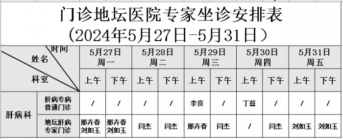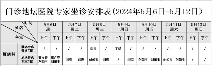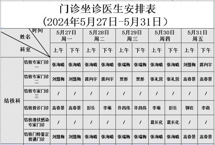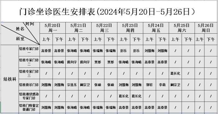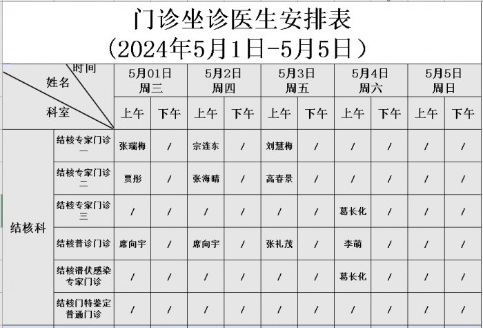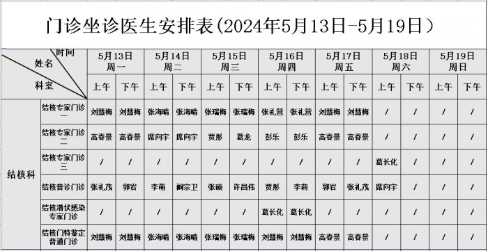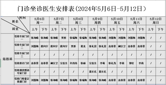 门诊坐诊医师安排表(2024年5月份)