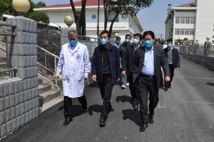 王书记同时介绍了中医药在新冠肺炎患者救治方面的应用。疫情期间,省市专家组联合医院中医科通过微信视频问诊、观察舌象变化,对患者进行单人单方精准中医治疗,对降低重症病死率、减少轻症转重症、加快恢复期患者康复起到重要的作用。