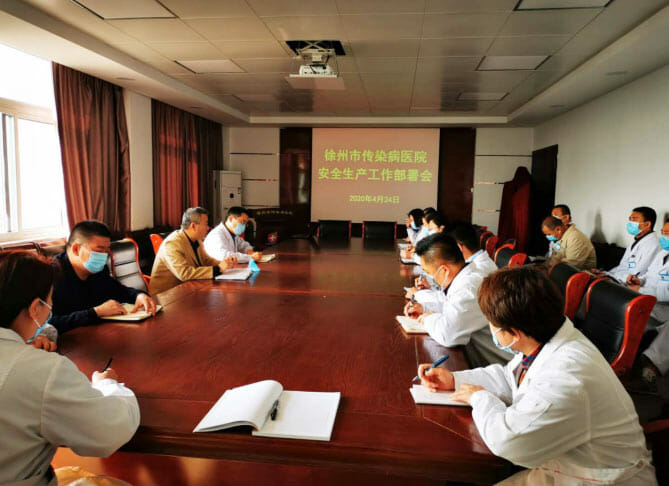 在新冠肺炎疫情防控持续期间,徐州市传染病医院为进一步推进安全生产主体责任落实,扎实开展安全生产专项整治行动,根据省安委会《企业落实安全生产主体责任重点事项清单》、省卫健委《关于全省卫生健康系统开展落实安全生产主体责任集中宣讲“春风行动”的通知》及市卫健委《关于开展落实安全生产主体责任集中宣讲“春风行动”实施方案》文件要求,4月24日,医院召开安全生产会议,就落实安全生产工作和“春风行动”实施,进行了工作部署。院领导和职能科室负责人20余人参加了会议。