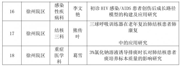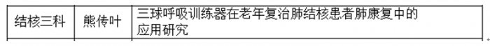 4月29日,经过现场答辩和专家组评价,结核三科熊传叶申报的“三球呼吸训练器在老年复治肺结核患者肺康复中的应用研究”最终入选“搭载智慧科技,实现学科梦想”护理科研重点扶持项目。