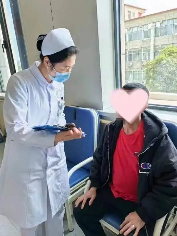 护士杨洋在为患者进行疾病健康宣教时,面对患者的询问,一遍遍地耐心解释。