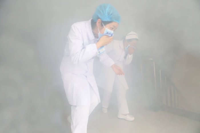 此次演练以“全科参与,全院联动”的消防防范模式,演练过程中,参与演练人员态度认真,迅速到位,严格按照逃生流程规范操作,在最短的时间内,捂住口鼻,安全迅速的穿过浓烟,快捷有序地完成人员疏散。