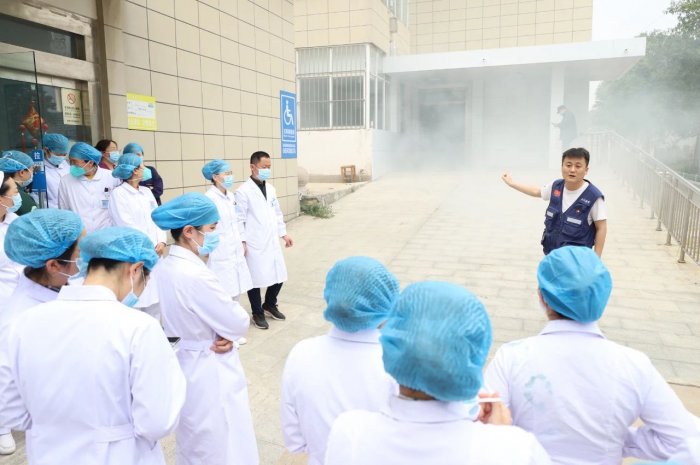 为进一步加强医院消防安全管理工作,提高职工消防安全意识和消防应急疏散能力,根据市卫健委《关于切实加强当前消防安全工作的紧急通知》要求,同时深刻汲取北京丰台医院的火灾事故教训,近期,市传染病医院组织部分科室人员开展消防应急救援演练。