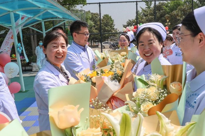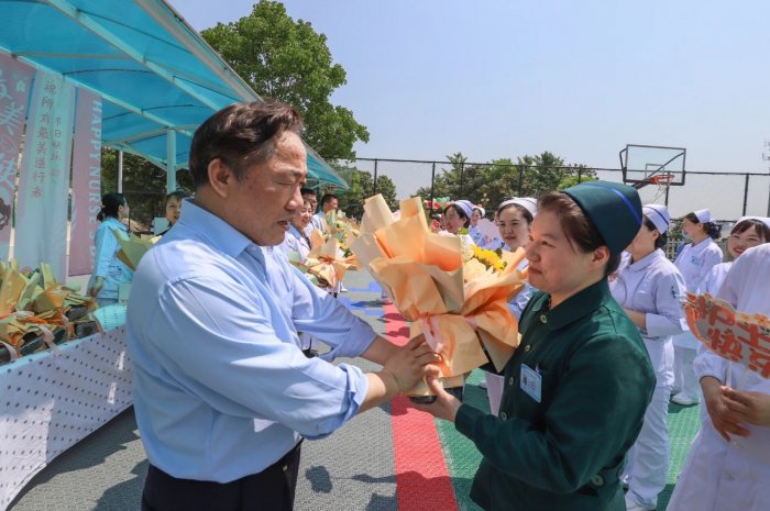 王为民代表院党委向全体辛勤工作的白衣天使们致以诚挚的敬意和节日的问候!他指出,在医院积极推进国家区域医疗中心项目建设的开局之年、全面建设的发力之年,新的挑战赋予护理工作者新的任务,同时给护理同仁们提出了新的、更高的要求。希望广大护理工作者凝聚起奋勇争先、更加出彩的磅礴力量,始终锚定“人民至上、生命至上”,为高水平建设国家区域医疗中心贡献力量。