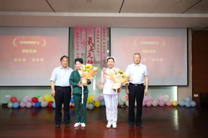 副院长王红艳宣读了荣获《30年护龄护士》、《最满意护士》、《最具潜力护士》、《让我们都当回病号》护患体验活动、《临床护理技能大赛》获奖名单。与会院领导为获奖集体代表、个人进行颁奖。