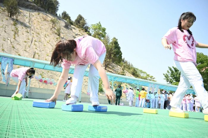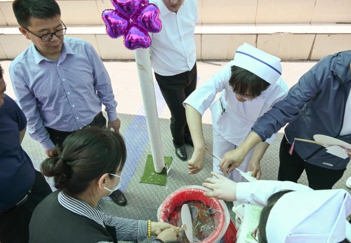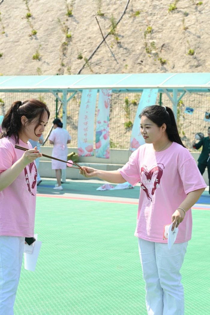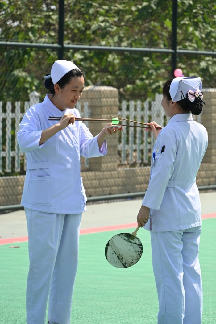 大会结束后,护理人员来到院篮球场开展户外团建拓展活动。护理部为大家精心准备了“车轮滚滚”、“夹弹珠”、“珠行万里”,“摸石头过河”、“背后传字”挑战项目和漆扇体验活动。活动中大家热情高涨,积极参加各种团队游戏和挑战项目,不仅考验了个人的身体素质,更展现了团队的团结协助精神。