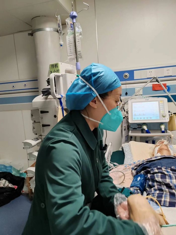 2020年初新冠疫情爆发,刘雪积极申请第一批进入隔离病房,参与新冠肺炎重症患者的救治护理工作。疫情常态化防控中,积极投身于疫情防控救治工作,参与新冠隔离病房ICU的筹备工作。2022年多次次进入新冠隔离病房工作,竭尽所能,任劳任怨。在2022年11月,她率领ICU小组进入新冠隔离病房,为新冠重症患者进行CRRT治疗。此时,刘雪的孩子还在哺乳期,她在体检时查出了胸腔积液,但是她仍然义无反顾地进入了隔离病房,带领小组成员在病房里紧张忙碌着,配制透析液体、调节透析参数、处理各种报警、病情观察记录,6-9小时的透析时长考验着她们的重症技术和克服困难的决心。最终,刘雪带领重症医学科的几位同志,圆满完成了此次透析救治工作。
