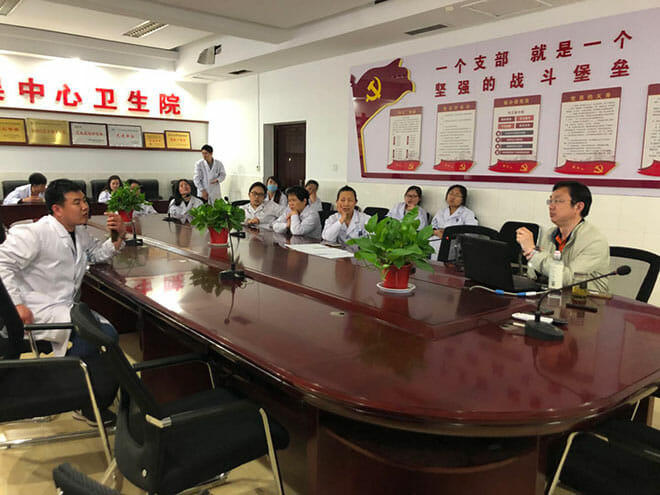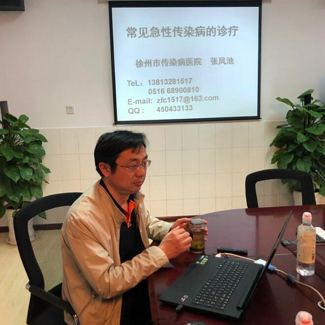 为了积极响应市卫计委关于“小病在社区,大病进医院,康复回社区”的就医新格局及我院创“三甲”评审要求。同时为普及传染性疾病相关知识,增强医务人员的健康服务理念,2018.4.26, 徐州市医科大学兼职副教授,徐州市公共卫生医疗中心感染性疾病科张凤池主任应邀来到贾汪区大吴镇中心卫生院(贾汪二院)对提高基层转诊质量进行培训指导。