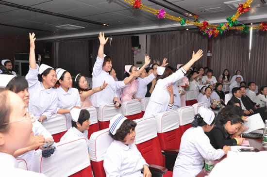表彰总结大会结束后,“最美天使”歌唱大赛及猜谜游戏活动正式拉开帷幕。共有12支代表队参赛,经过激烈的角逐,六病区周泳杞和肝病四科的孙静以坚实的唱功及出色的舞台表现荣获第一名。此次活动丰富了护理人员的文化生活,充分放松了广大护理人员的身心,大家在节日里收获了鲜花和掌声,在活动中获得了愉悦,收获了友谊,同时也展示了传染病医院护理人热爱护理事业、蓬勃向上的昂扬精神面貌。