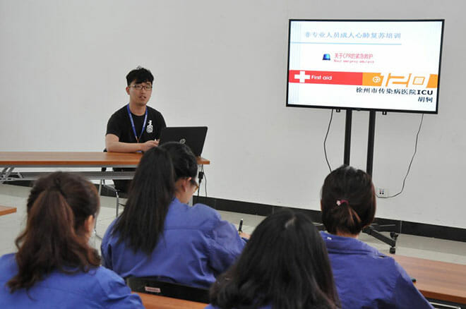 在107个国际护士节来临之际,为了提高全民急救技能和传染病的防控水平,5月10日下午,徐州市传染病医院护理部组织专业学组来到徐工集团,开展了以“关爱生命 健康续航”为主题的急救技能、传染病知识的科普宣传活动,徐工汽车工会负责人及企业工人约100余人参与了此次活动。