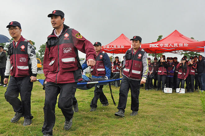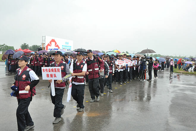 本次医院派出由外科、内科、ICU、感染性疾病科等众多科室组成的20人紧急医学救援队参加演练。在我市某县突发重大自然灾害的情况下,在接到通知后第一时间到达灾害现场,对“伤员”进行包扎、固定的操作和流程。我院救援队人员技术娴熟,操作规范,在规定时间内为所有“伤员”做好了紧急救治工作,并用担架将伤者送上救护车,圆满完成救援任务。