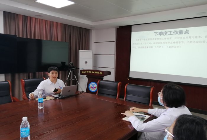 最后,潘院长就一季度医院感染控制工作开展情况进行总结点评,同时强调做好医院感染管理意义重大,全院各科室要各司其职,担当作为,严格落实感控各项制度措施,重点关注科室风险,严格执行标准预防,最大限度避免职业暴露,一旦发现感染疑似病例要立即落实相关病原微生物送检规范并及时上报,全力保障患者和医护人员安全。