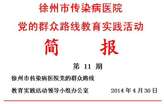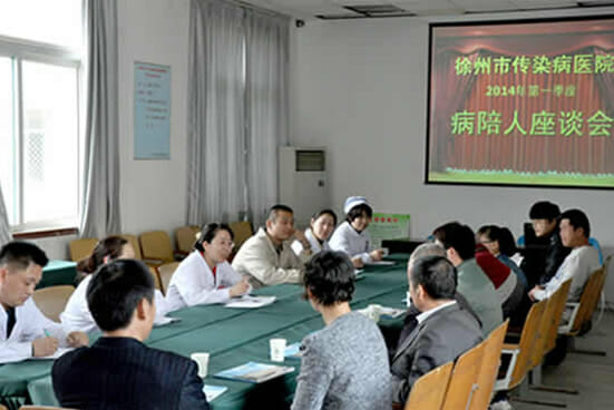 开展党的群众路线教育实践活动以来,徐州市传染病医院党委坚持开门搞活动,引领全院职工树立“让人民群众满意是唯一标准”的质量观,进一步解决卫生行业存在的医患关系不和谐、医疗服务不细致、人性化服务不完善等问题,营造人人关注群众、处处关爱群众、事事方便群众、追求群众满意的医疗卫生服务氛围。2014年4月29日下午召开了病(陪)人座谈会,王春颖副院长、行风办、医务科、护理部、政工科、总务科、院门诊等科室负责人及各病区病(陪)人代表参加了座谈会。