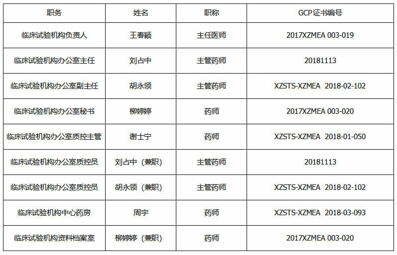 药物临床试验机构人员介绍一览表
