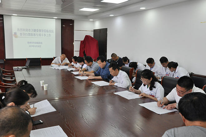 2019年5月28日上午,徐州市卫健委扫黑除恶专项活动督导组杨洪涛副调研员和李建光副秘书长就扫黑除恶专项活动开展情况对徐州市传染病医院进行督导检查。院领导班子成员及中层干部陪同督导检查。
