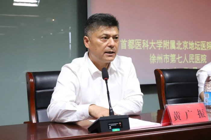 国家区域医疗中心建设得到市委市政府、市卫健委的大力支持,黄广振在会上作重要讲话,要求市七院全体干部职工要提高政治站位,充分认识国家区域医疗中心的重要意义;要全力配合,主动遵循北京管理运行机制;要增强大局意识,牢固树立与国家区域医疗中心共发展的理念;要强化绩效考核,以绩效管理带动高质量发展。黄广振强调,作为国家区域医疗中心建设的亲历者、参与者和建设者,希望七院广大干部职工紧盯目标、全力以赴,为推动国家区域医疗中心建设、促进健康徐州建设做出贡献。