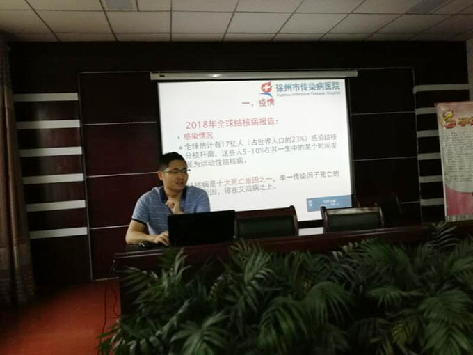 结核病是一种经呼吸道传播的慢性传染病,是全球高感染率、高死亡率的一种传染病。我国每年结核病新发病例为全球第三位,约有450多万肺结核病人,结核杆菌的携带者达到了44.5%。结核病疫情,严重危害着广大人民群众的身体健康,已成为重大的公共卫生问题。为普及结核病相关知识,高春景主任应邀来到徐州市传染病医院“医联体”建设合作单位铜山区马坡镇卫生院开展业务讲座。
